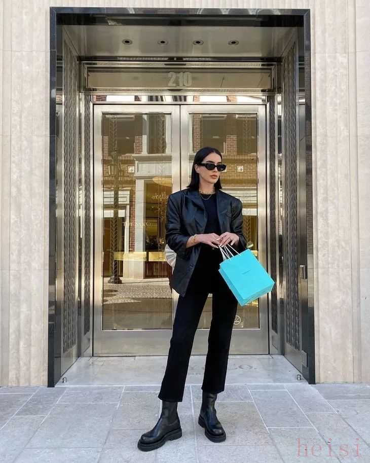 很難想象這種靴子還能ho住日常通勤裝?還真別說(shuō),切爾西靴加持,這個(gè)秋冬季你就是辦公室最靚的崽。不管是搭配裙裝還是褲裝,西服外套一穿就是重機(jī)車(chē)風(fēng)短靴的絕配。