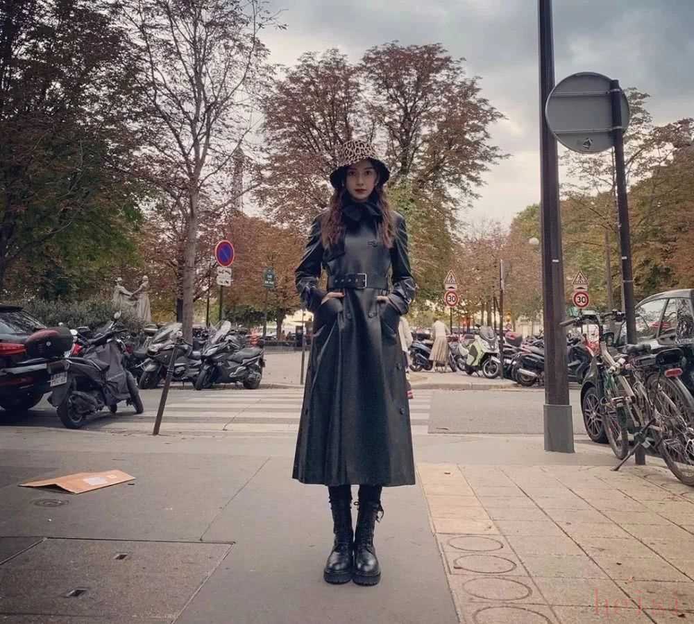 大寶貝Angelababy也選擇了這雙高靴,全黑皮質(zhì)風(fēng)衣玩轉(zhuǎn)秋冬搭配。