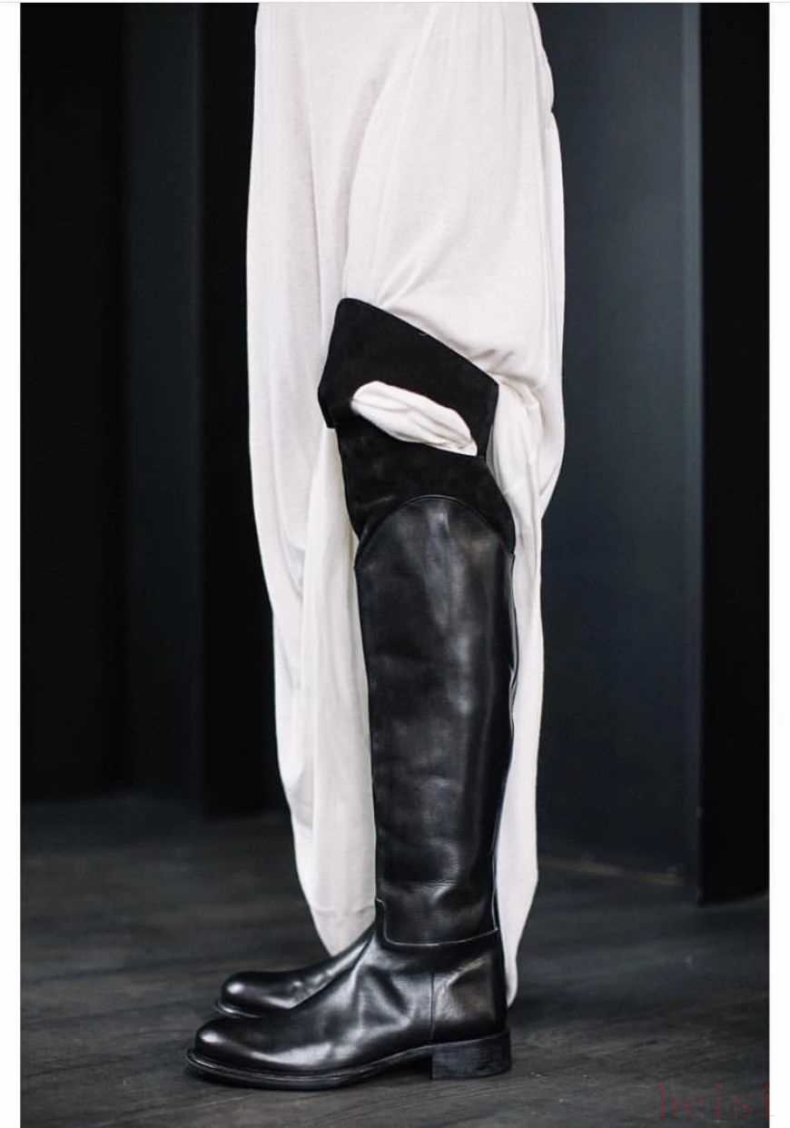 第一位,Ann Demeulemeester這個比利時品牌也以騎士靴著名。來,跟芭姐一起念:安·德穆勒米斯特。