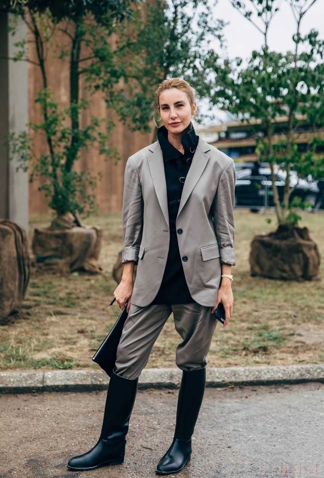 老生常談了,如果不想呈現(xiàn)一種腿部的截斷感,那還是同色系的褲靴最保險啦,當(dāng)然,小鳥腿仙女隨意穿。