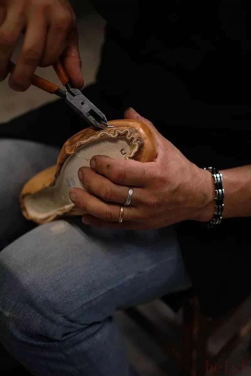 Guidi來自于意大利Pescia小鎮(zhèn),這個擁有悠久歷史的小鎮(zhèn)制皮運動是可以追溯到中世紀(jì),以其做舊以及破壞處理的效果、獨特的工匠制鞋精神而聞名于世。
