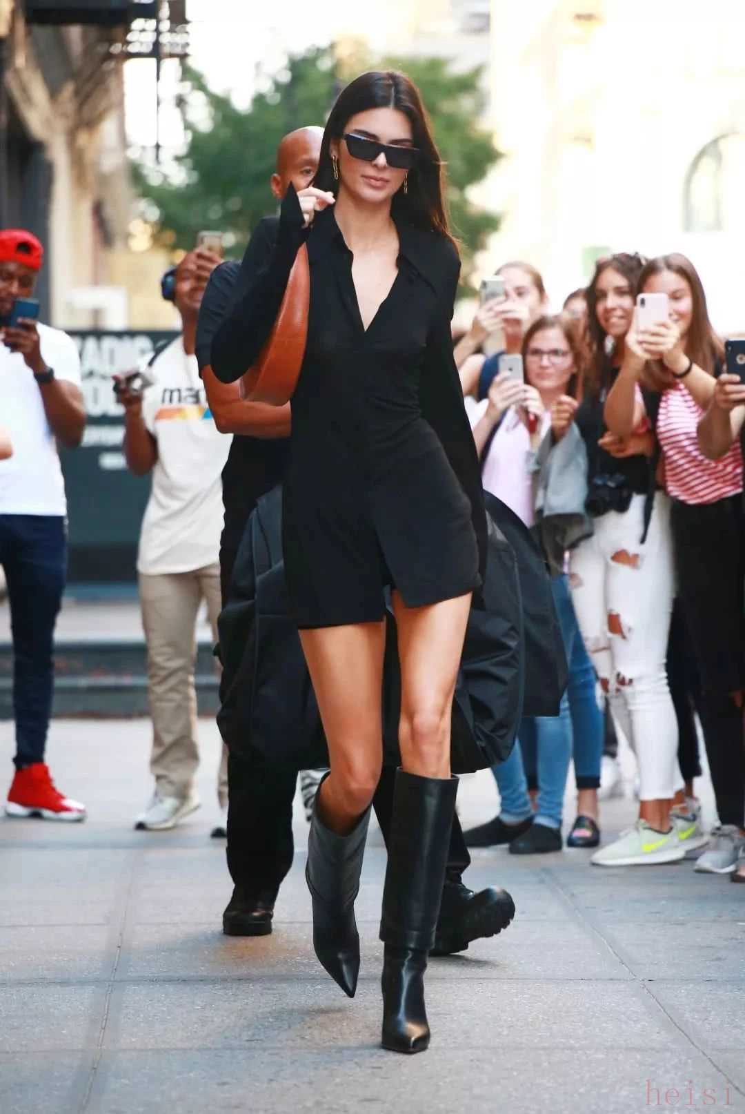如果覺得圓頭鞋頭太可愛,還可以像Kendall一樣選擇方頭及膝靴,一樣帥氣又吸睛。