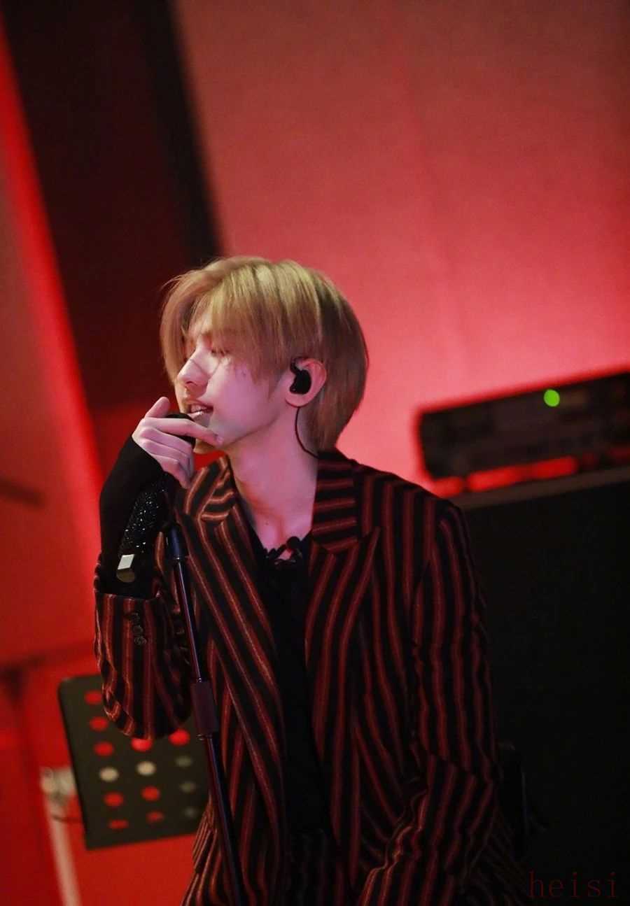 蔡徐坤也在《重生》歌曲的演出中身著Ann Demeulemeester紅黑條紋西服套裝,慵懶隨性,服裝本身的朋克風(fēng)與歌曲相得益彰。