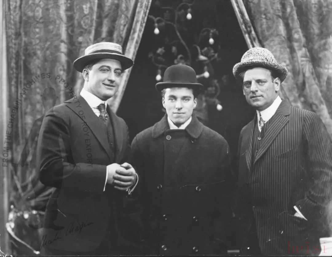 ▲Essanay三巨頭,弗朗西斯·布什曼、查理·卓別林、布龍科·比利·安德森