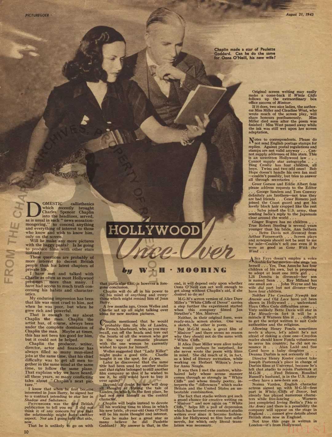 ▲據(jù)這份1943年《好萊塢往事》所載,《凡爾杜先生》是卓別林與奧遜·威爾斯一同商議而成