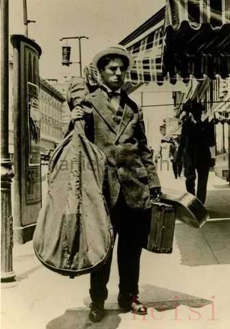 ▲隨卡諾爾劇團(tuán)赴美巡演期間,卓別林也一直攜帶著他的大提琴,并保持每天3-4小時(shí)的練習(xí)