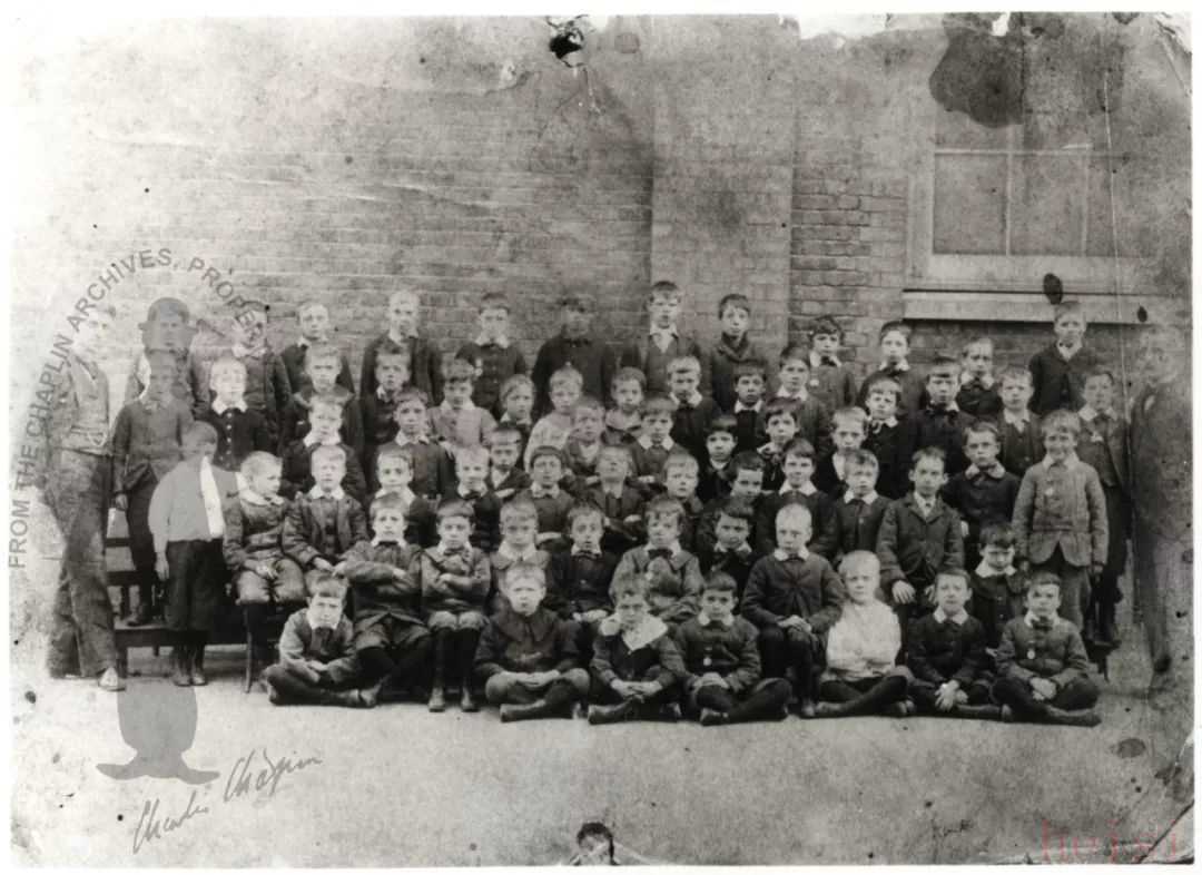 ▲攝于1897年,漢威爾學(xué)校班級(jí)集體照,四歲的卓別林也在其中。該照片還被用在了《流浪漢》中