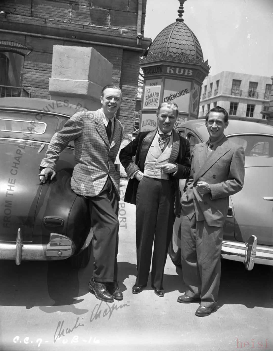 ▲卓別林、Maurice Bessy、羅伯特·弗洛里在《凡爾杜先生》片場(chǎng)
