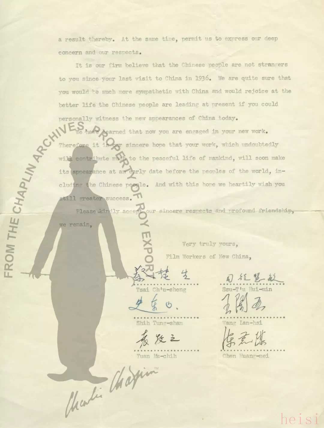 1957年,袁牧之導(dǎo)演、蔡楚生導(dǎo)演等也曾寫信卓別林來華。