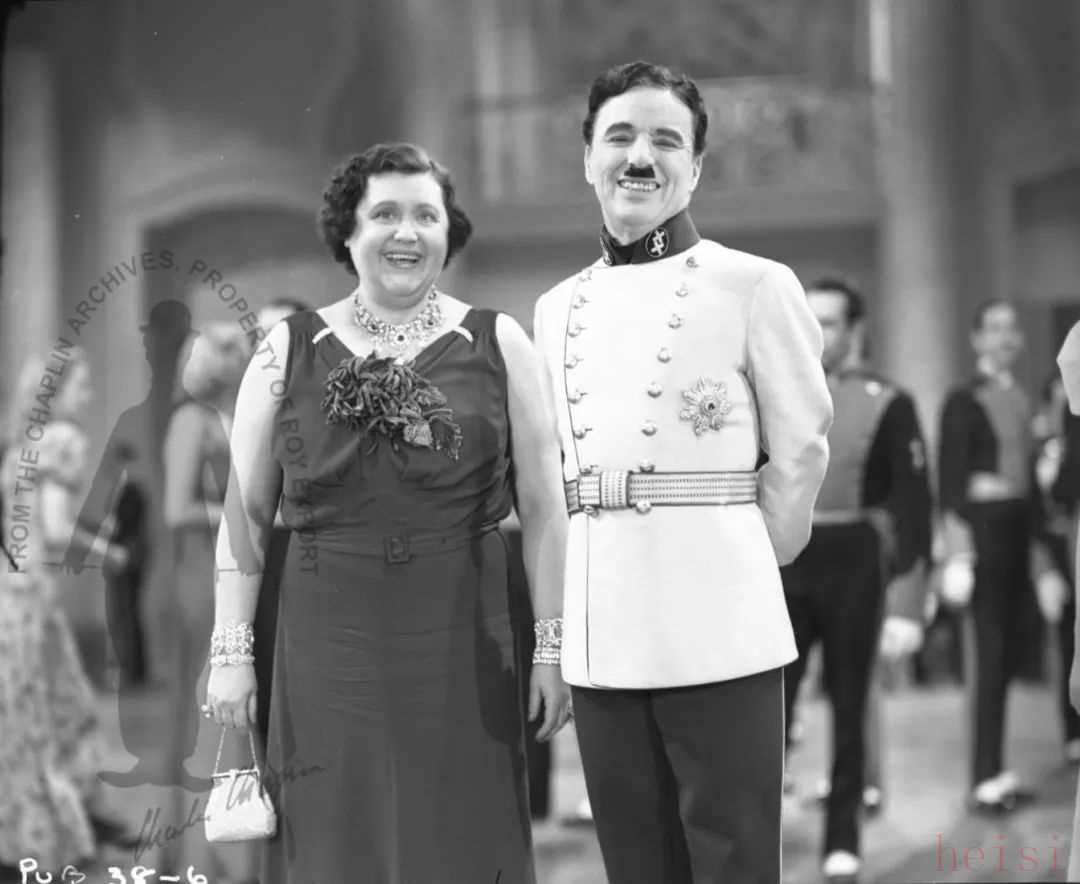 ▲格雷絲·海爾和卓別林在《大獨(dú)裁者》的片場(chǎng)