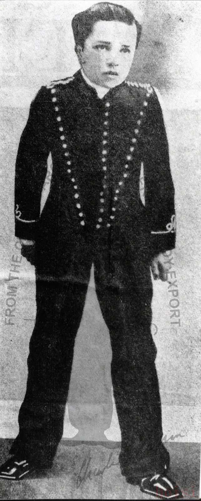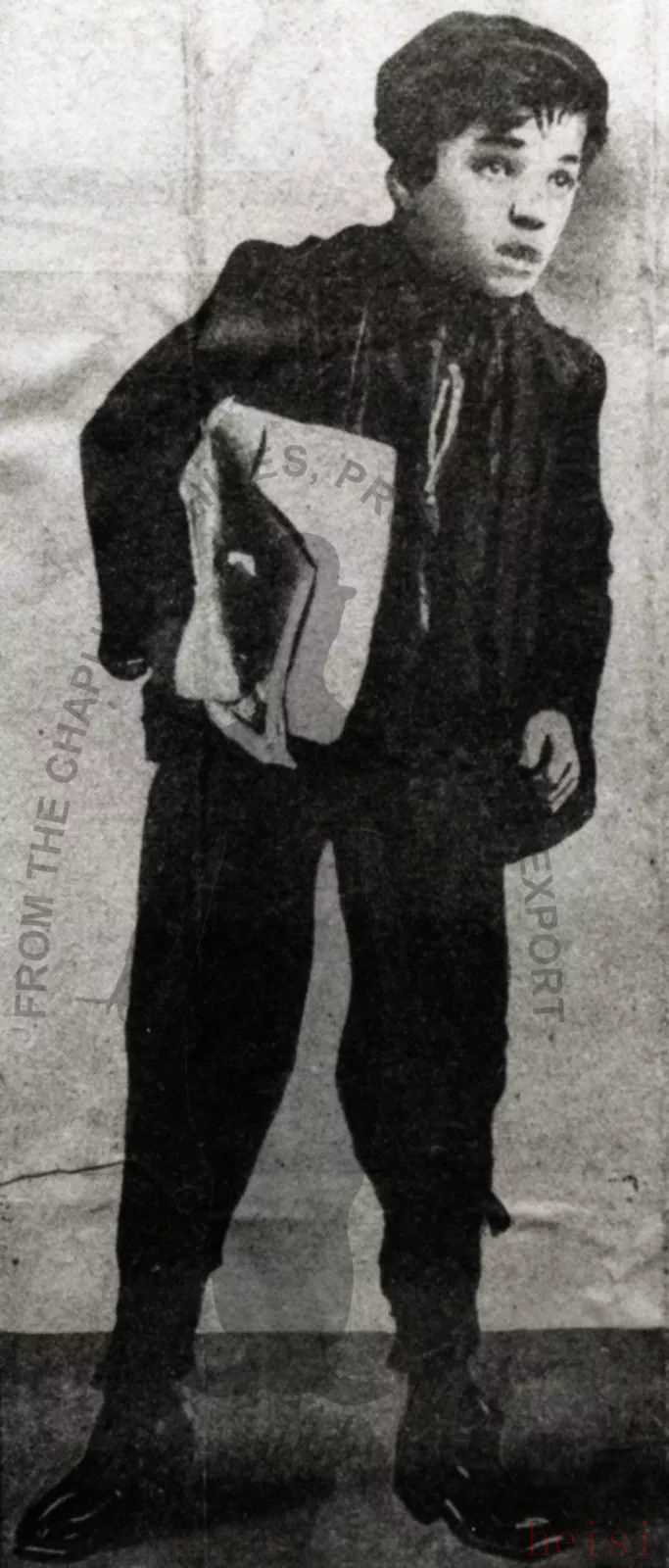 ▲初次出演,在戲劇「Jim, A Romance of Cockayne」中扮演報(bào)童的卓別林