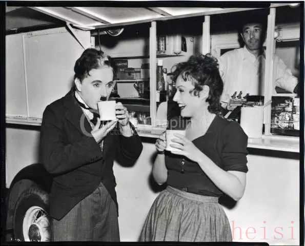 ▲寶蓮·高黛和卓別林在《大獨(dú)裁者》的片場(chǎng),寶蓮·高黛在主演完《摩登時(shí)代》后便與卓別林秘密結(jié)婚
