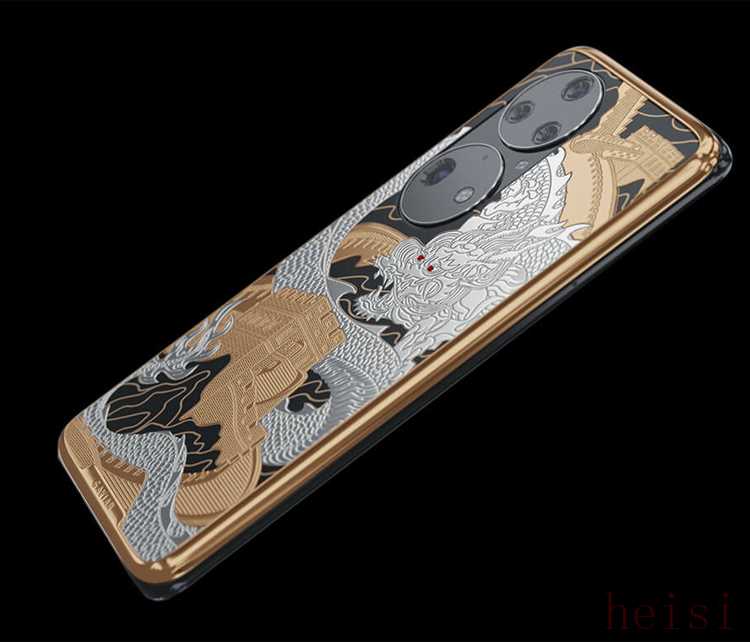 在這款豪華手機(jī)的金色背景印刷品下方是中國(guó)長(zhǎng)城的雄偉3D線條浮雕。這個(gè)中國(guó)最重要的地標(biāo)是由珠寶合金制成,24K雙鍍金。一條威武的銀龍盤踞在長(zhǎng)城中,用紅寶石般的眼睛威嚴(yán)地注視著中國(guó)的天空。