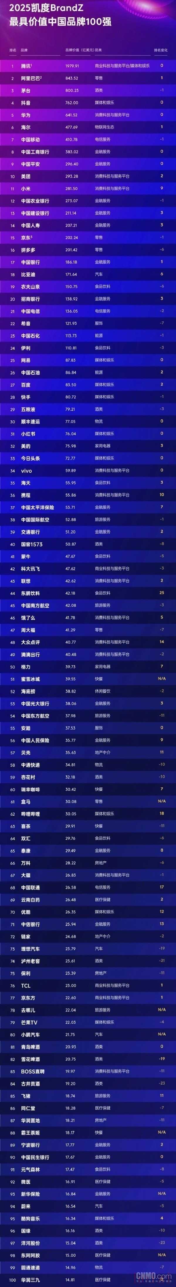 2025年中國品牌價(jià)值百強(qiáng)榜揭曉,騰訊領(lǐng)跑,華為位列第五