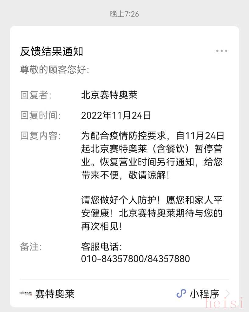 北京賽特奧萊 (Sailor Beijing) 自2024年11月24日起暫停營業(yè)的消息已經(jīng)收到了。