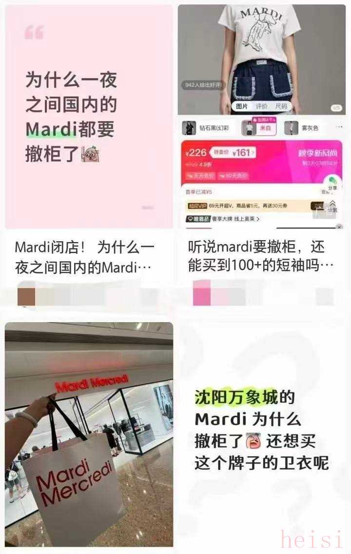 作者|元青編輯|文定高退貨率、高投流費用,成為壓跨服飾品牌的兩大兇手。最近又有一個品牌宣布清倉關店,退出中國。有網(wǎng)友在社交平臺上發(fā)帖稱,服飾品牌Mardi Mercredi將要退出中國市場,國內(nèi)的門店都會關閉,目前已經(jīng)有多個城市的門店在進行清倉活動。
