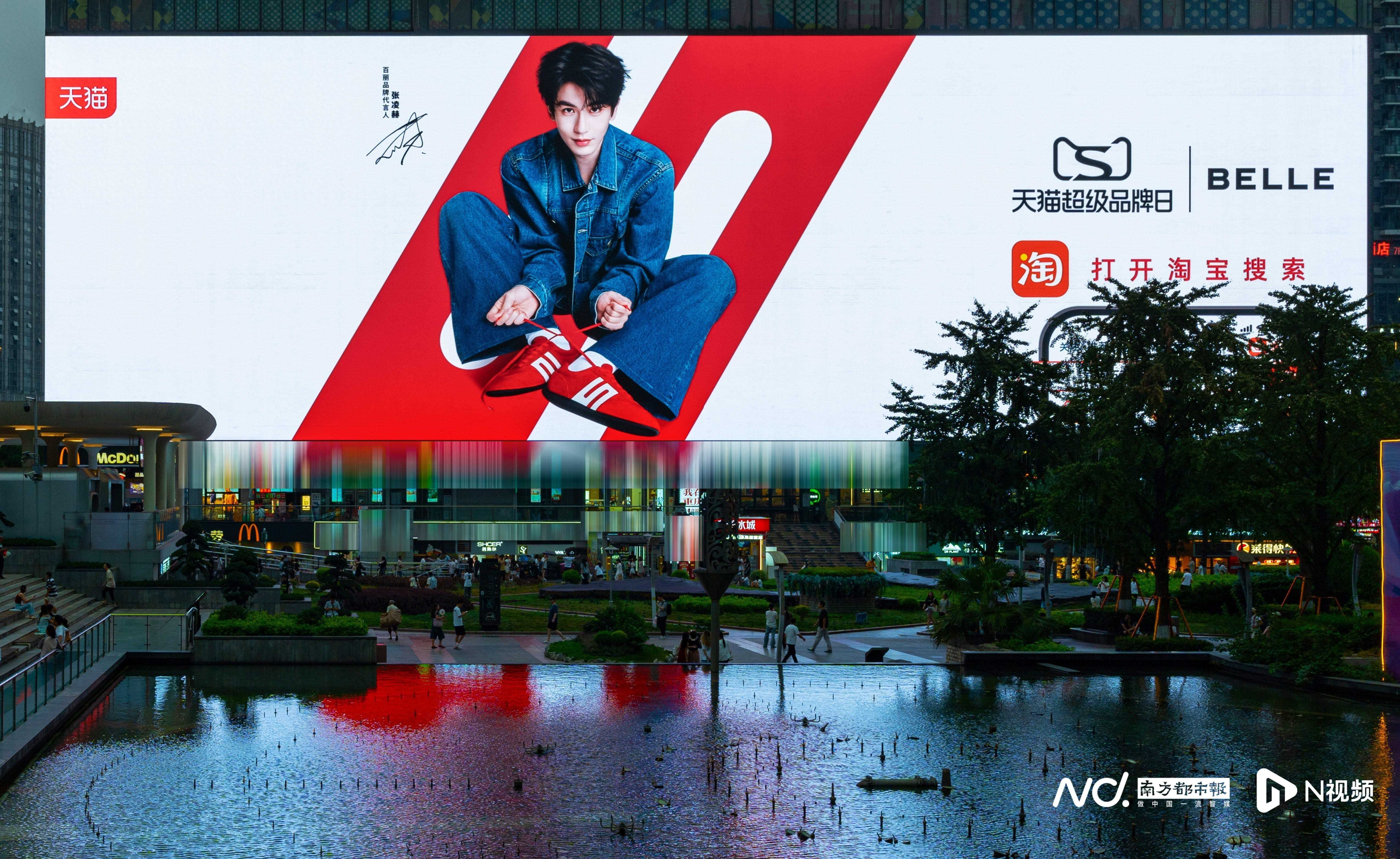 2025年9 月初,BELLE 牽手代言人張凌赫舉辦線下發(fā)布會,正式揭曉“跑道”這一核心視覺符號——它不僅被巧妙地融入新鞋設(shè)計,成為鞋款的標志性元素,還同步鋪滿全國多地的戶外廣告,形成強烈的視覺沖擊。