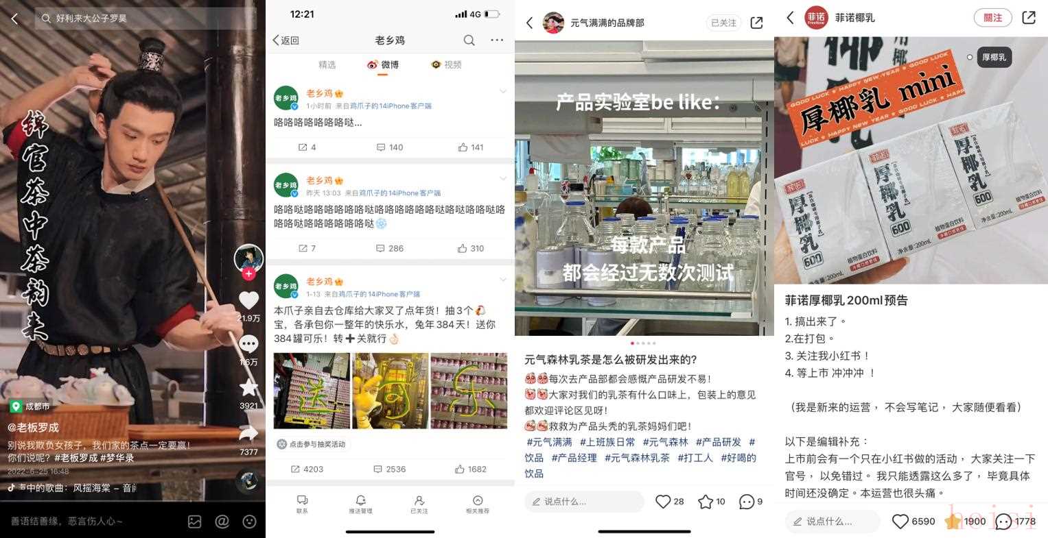 圖片來源:老板羅成、老鄉(xiāng)雞、元氣滿滿的品牌部、菲諾椰乳