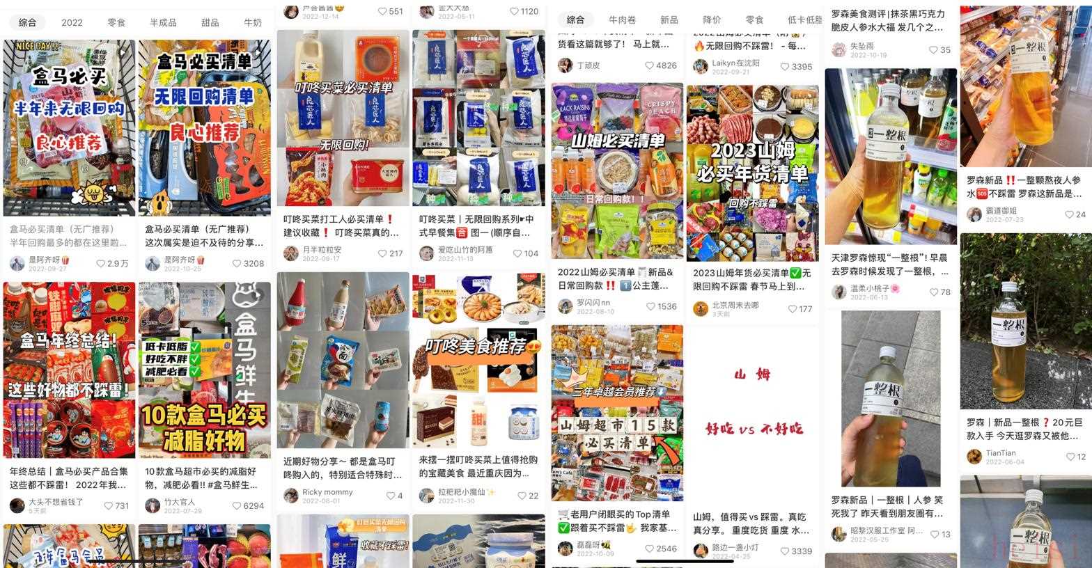 如小紅書、抖音等平臺上的“盒馬/山姆/叮咚必買”這類用戶自主分享內(nèi)容的出現(xiàn),反映了消費者會綜合考量渠道和產(chǎn)品作為消費依據(jù)的心智。
