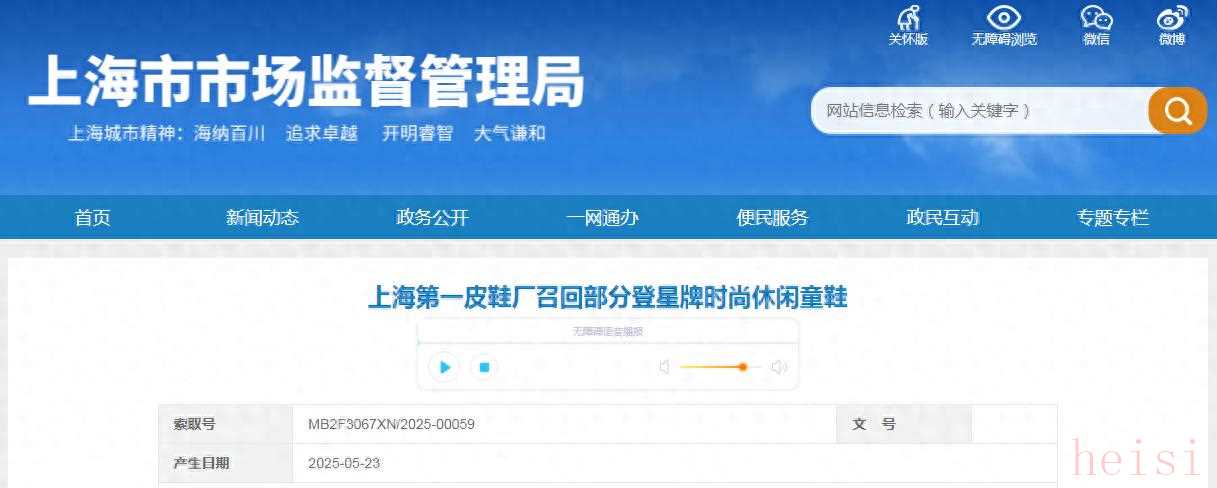 您可以嘗試通過(guò)搜索引擎搜索“上海第一皮鞋廠 登星牌童鞋 召回”等關(guān)鍵詞,查找最新的官方召回公告以獲取最準(zhǔn)確的信息。