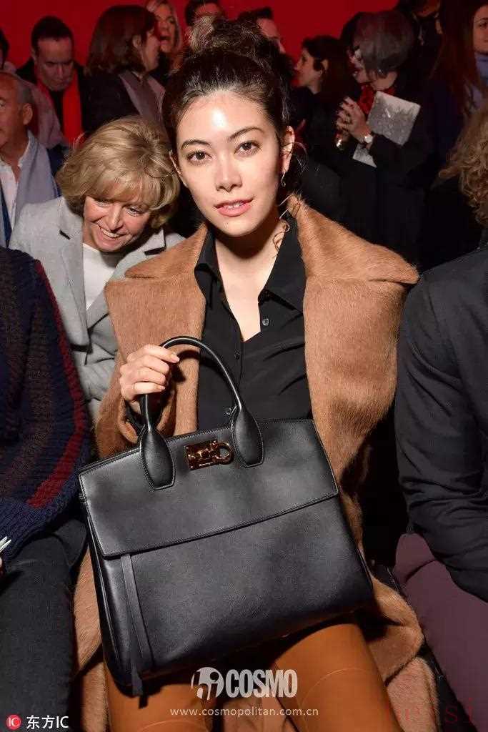 日本當(dāng)紅模特Hikari Mori受邀前來(lái)看秀,身穿黑色襯衫搭配棕色長(zhǎng)款外套及同色系長(zhǎng)褲,特別是Hikari Mori的高級(jí)臉讓COCO一臉羨慕,光是看臉就讓人眼前一亮。