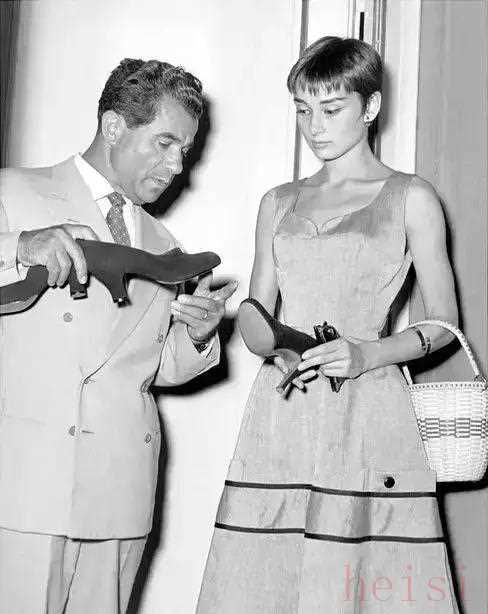 菲拉格慕先生在1954年為赫本設(shè)計(jì)過(guò)一雙酒紅色的Artia絨面高跟鞋