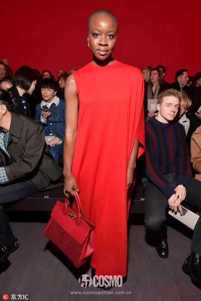 憑借大熱美劇《行尸走肉》被大家熟知的Danai Gurira當(dāng)天以一身高調(diào)紅色look現(xiàn)身Salvatore Ferragamo秀場(chǎng)十分搶眼。
