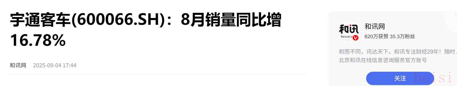 ——THE END——參考資料:和訊網(wǎng)——宇通客車(600066.SH):8月銷量同比增16.78%
