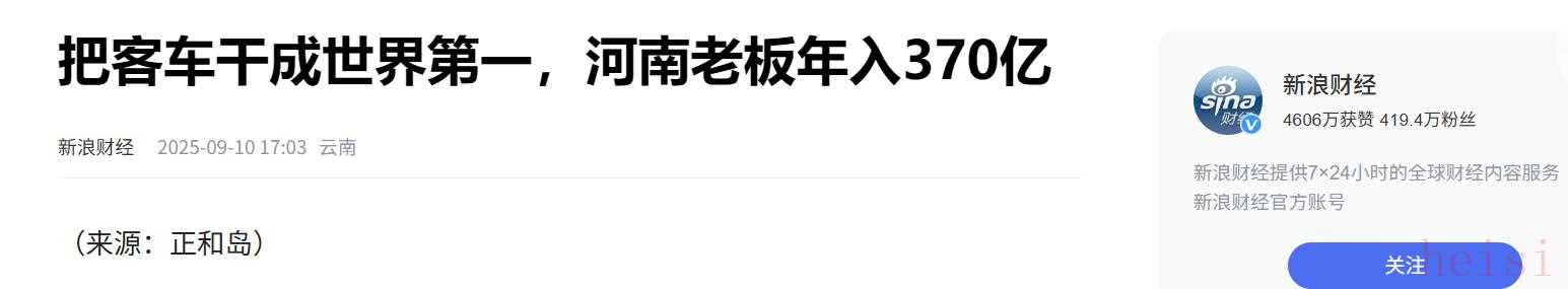 新浪財(cái)經(jīng)——把客車干成世界第一,河南老板年入370億