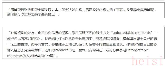 看到這些圖片和文字的時候,我完全理解了,為什么Pandora能夠在奢侈品市場陷入整體低迷的今天,保持年銷售額超過30%的同比增長。別忘了,基礎銀價3元/克,一條鏈子15克,而潘多拉在香港賣700多左右。