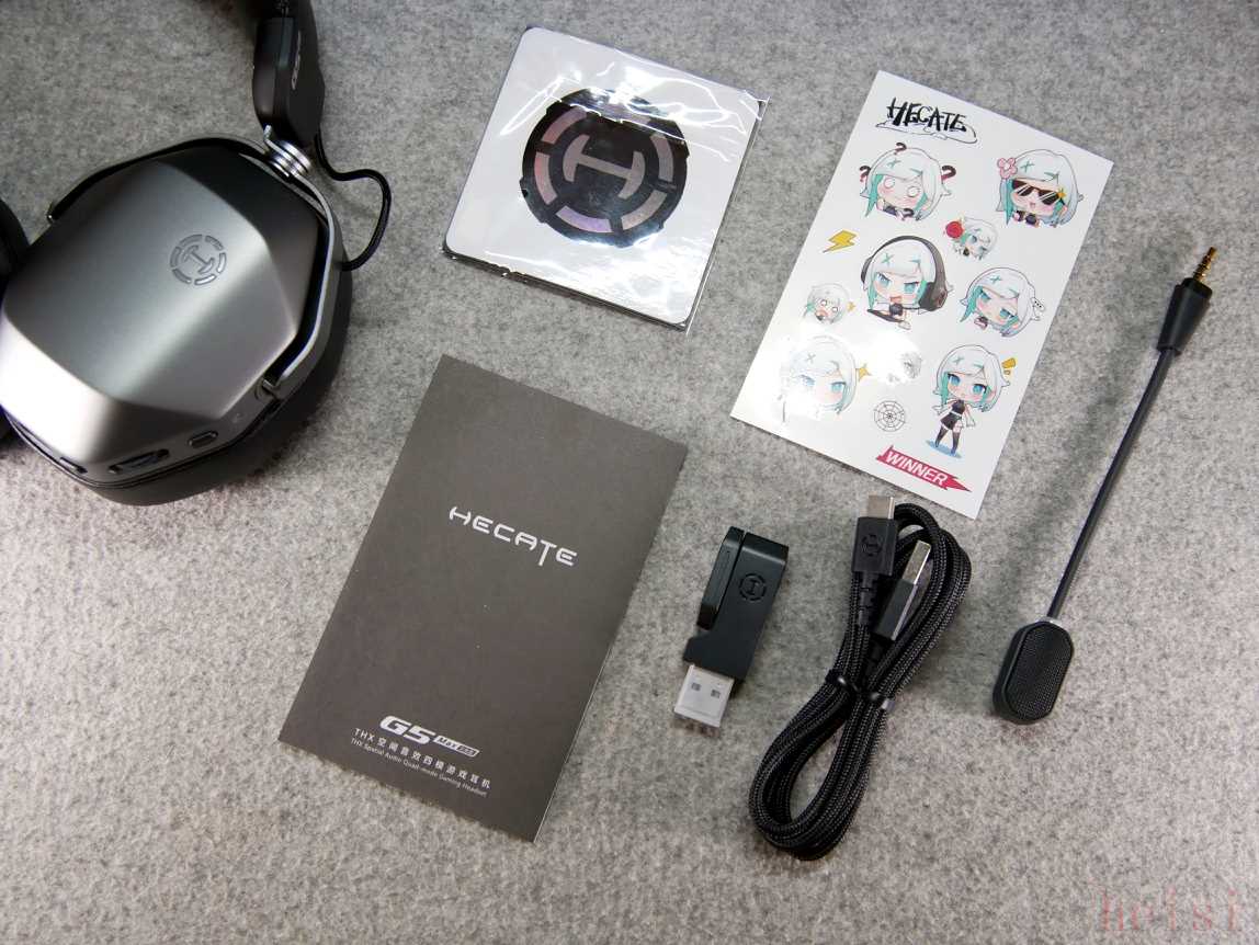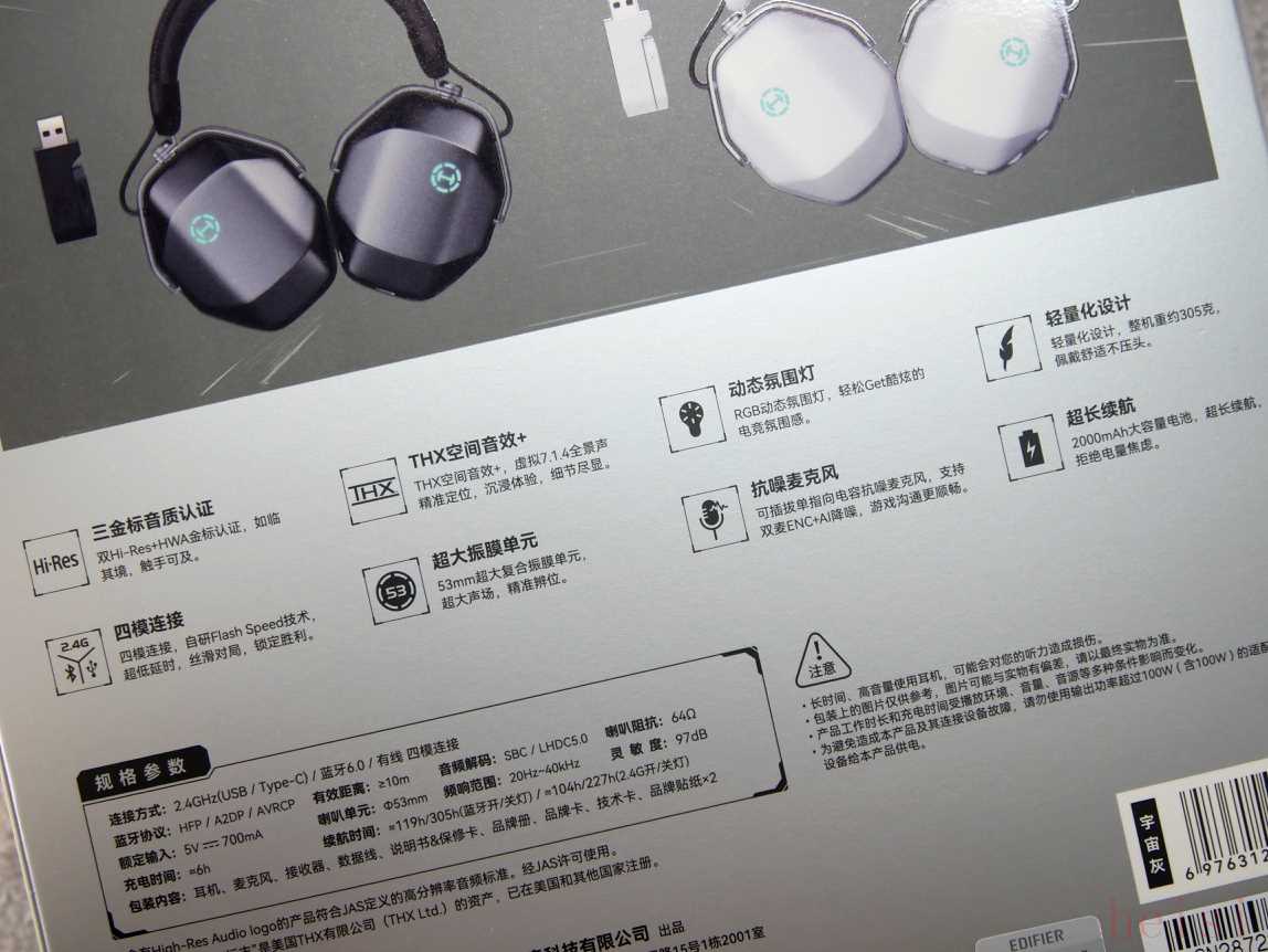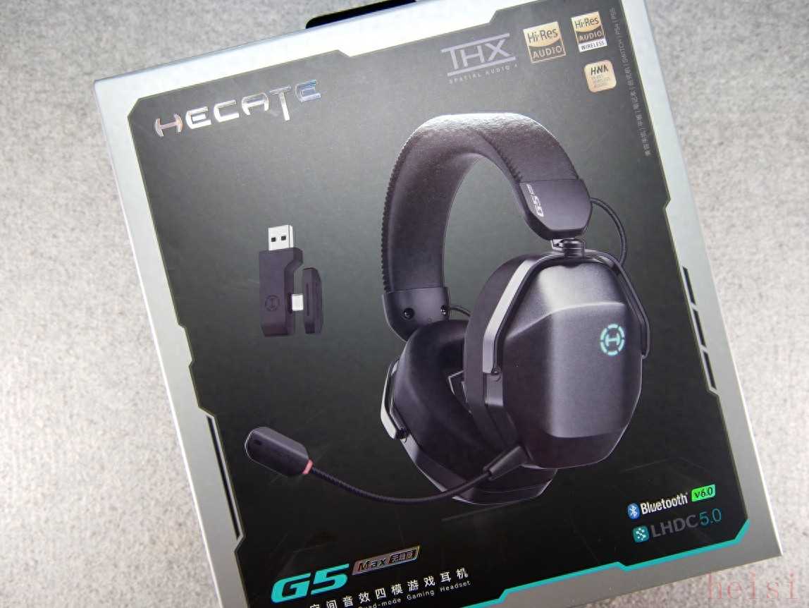 外包裝方面,HECATE G5 MAX 耳機采用了家族的統(tǒng)一設計,風格一如既往的簡約外加科技感,正反面都標注了耳機的很多特色賣點,例如三金標的音質(zhì)認證,THX的空間音效加持,四模連接方式,超大的耳機聲音單元等等。