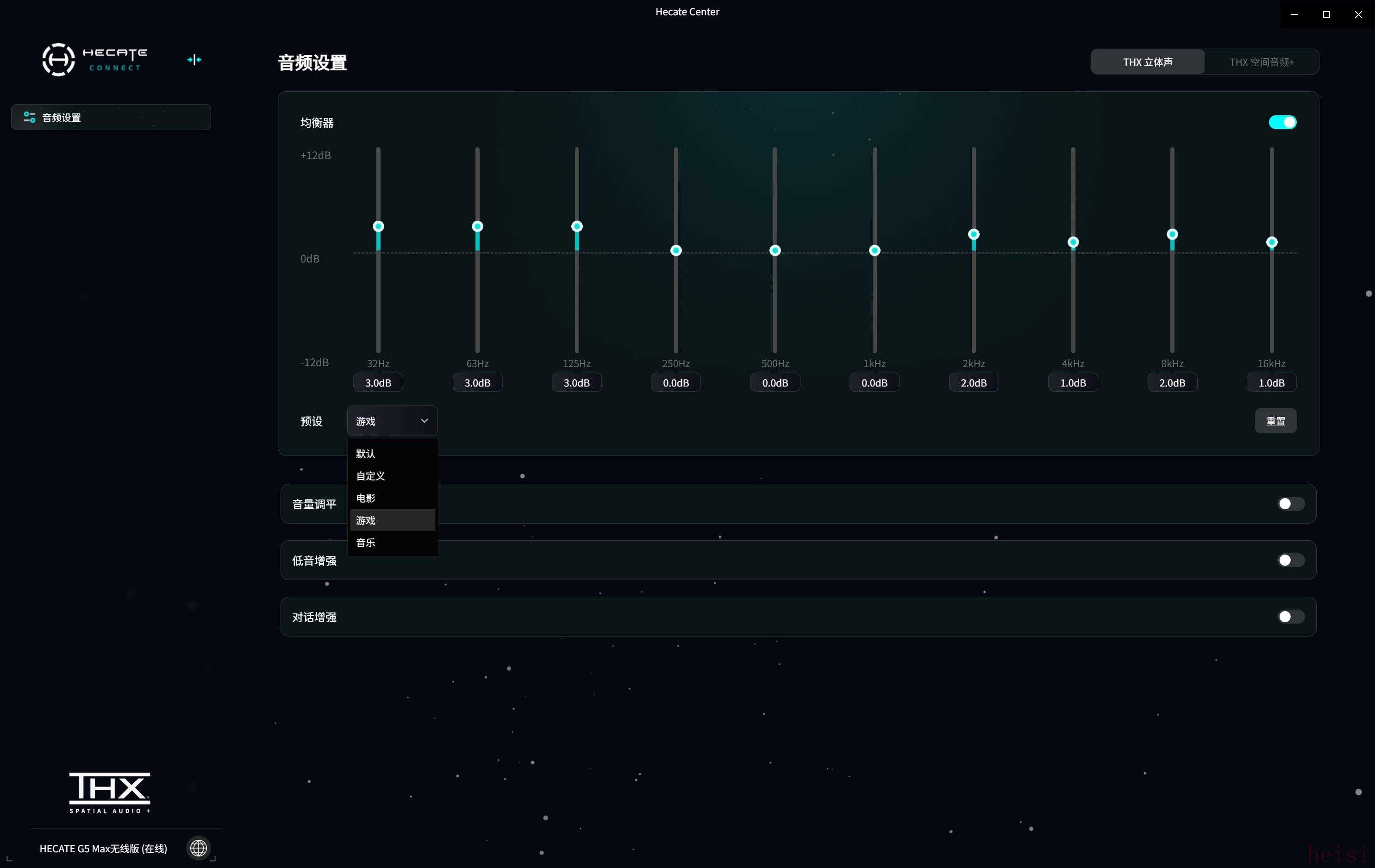 在電腦上安裝完耳機的驅(qū)動之后,在游戲中,開啟 THX 空間音效后,HECATE G5 MAX 耳機 的表現(xiàn)更是令人驚艷。以熱門的 FPS 游戲《無畏契約》為例,腳步聲、槍聲、爆炸聲等各種聲音層次分明,方位感十足。你能清晰地判斷出敵人是從左前方還是右后方靠近,提前做好應對準備,搶占游戲先機,大大提高游戲勝率。即使在復雜的團戰(zhàn)場景中,眾多音效交織在一起,它也能讓你清晰地分辨出隊友的語音指令,避免因聲音混亂而導致的溝通不暢,讓團隊協(xié)作更加默契。