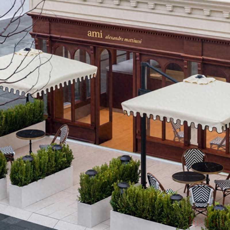 AMI拱廊街限時店毗鄰Ami Paris成都太古里精品店,復刻巴黎拱廊街概念,將限時店與AMI咖啡店相結(jié)合??臻g設(shè)計沿用Galerie Vivienne標志性的拱形門窗,青銅色調(diào)盡顯歷史質(zhì)感。內(nèi)部特別設(shè)置巴黎風格店鋪櫥窗,包括理發(fā)店、干洗店、鞋匠鋪、珠寶店與面包坊等場景。在營造巴黎時尚街區(qū)氛圍的同時,巧妙陳列品牌單品。