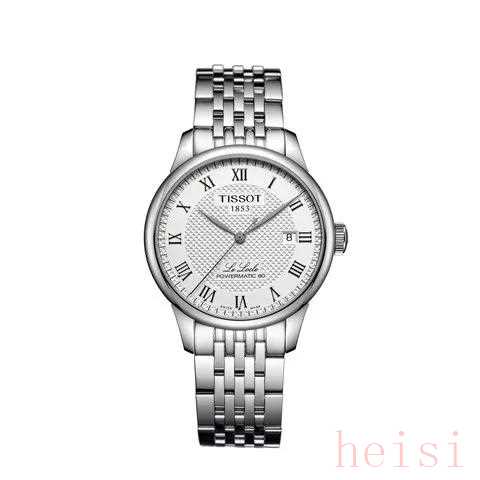 天梭力洛克T41.1.483.33 機(jī)械表通過(guò)銀色質(zhì)感十足的不銹鋼彰顯氣質(zhì),銀色羅馬刻度與“LELOCLE”藝術(shù)體搭配相得益彰,39.3mm大小適中的表盤(pán)直徑與手腕完美貼合。