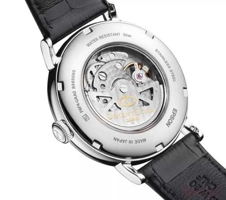 表帶是黑色小牛皮軋鱷魚(yú)紋,簡(jiǎn)約和經(jīng)典完美結(jié)合,有種外表斯文,內(nèi)心不羈的意味。除此以外,它僅有6.95毫米厚度,搭載美度首次使用的1192全自動(dòng)機(jī)械機(jī)芯,以ETA2892-A2機(jī)芯為基礎(chǔ)改進(jìn),透明表底可以看到機(jī)芯打磨非常精美。