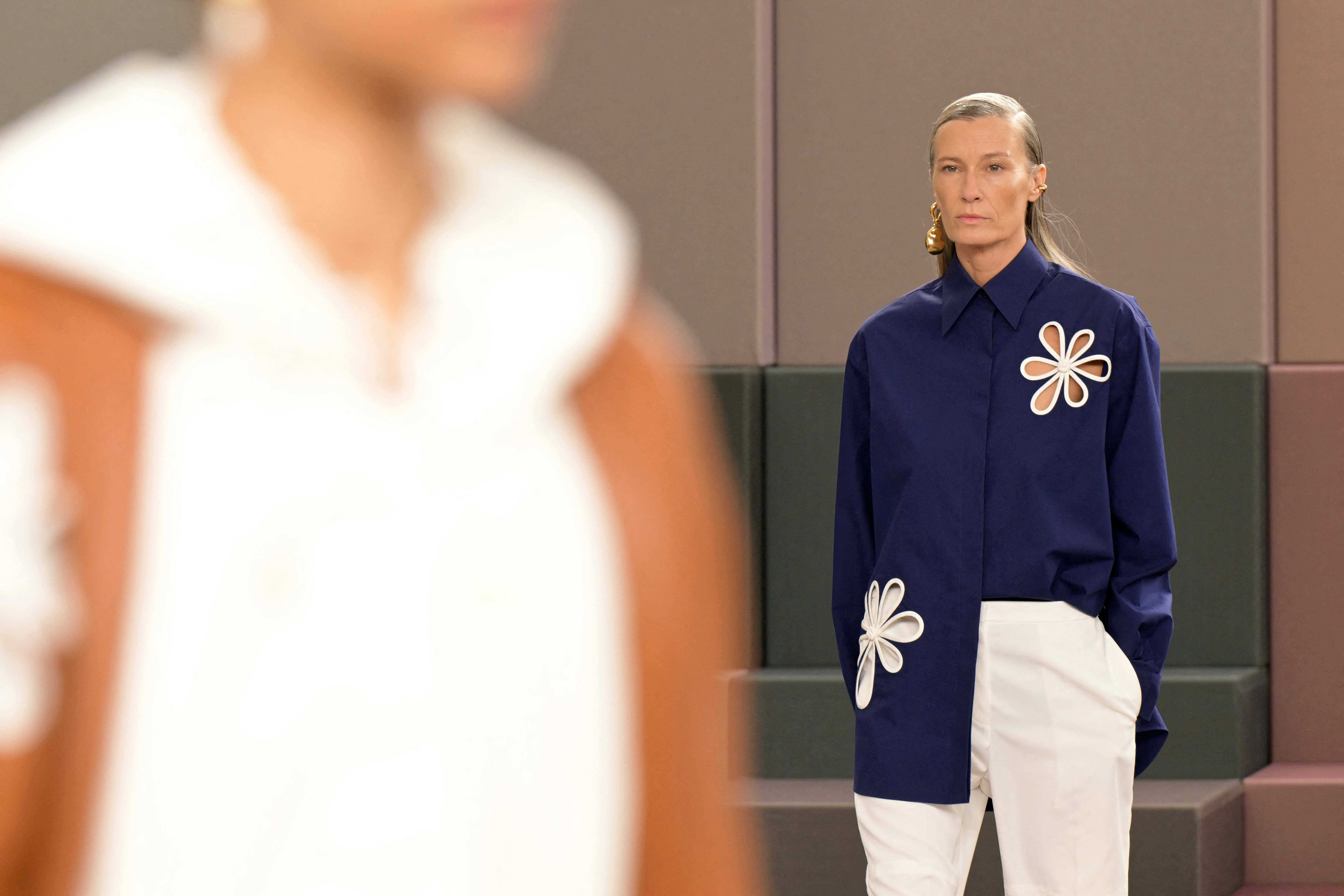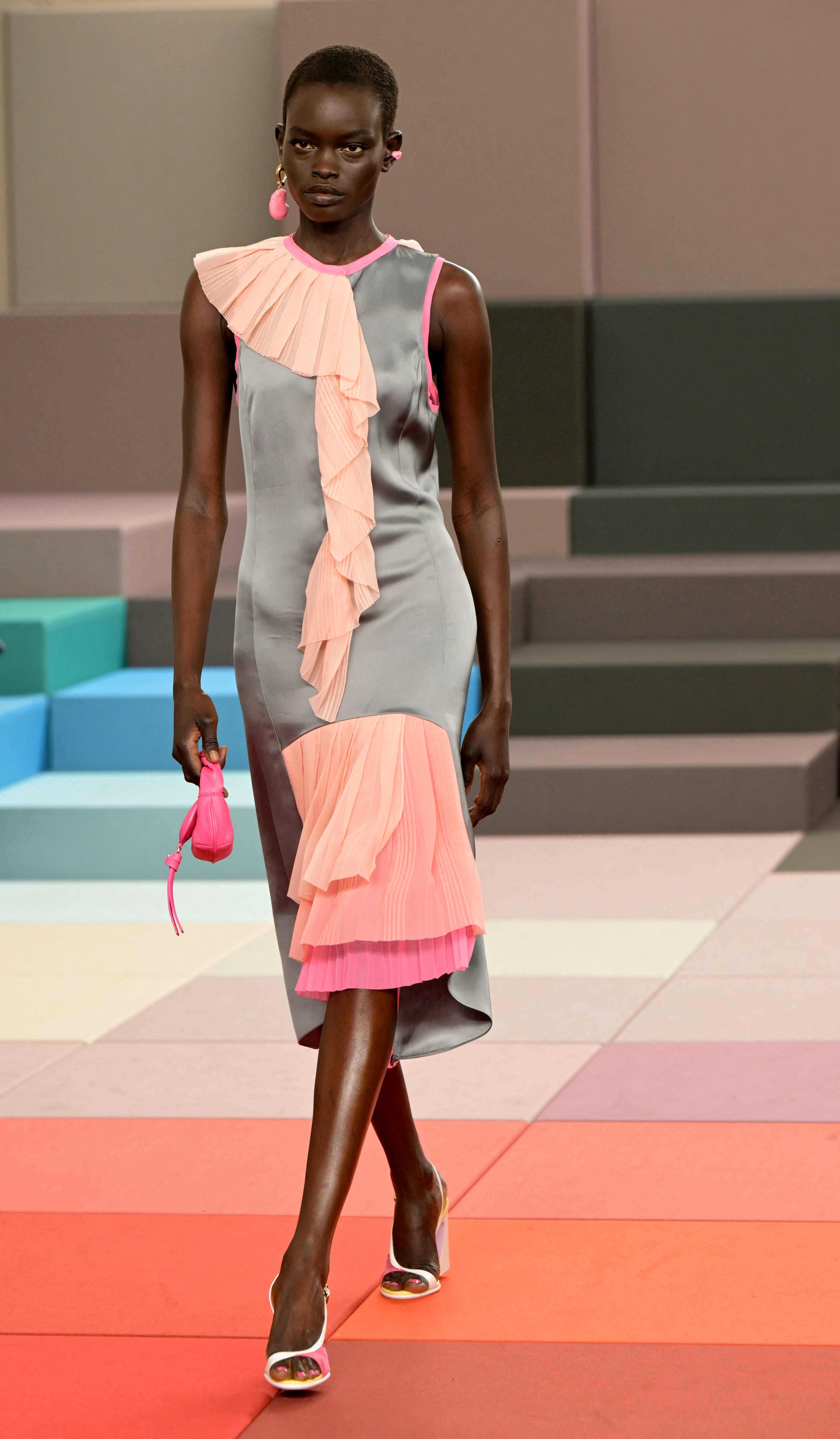 9月24日,模特在意大利米蘭時(shí)裝周上展示芬迪品牌的2026春夏新品。新華社/法新
