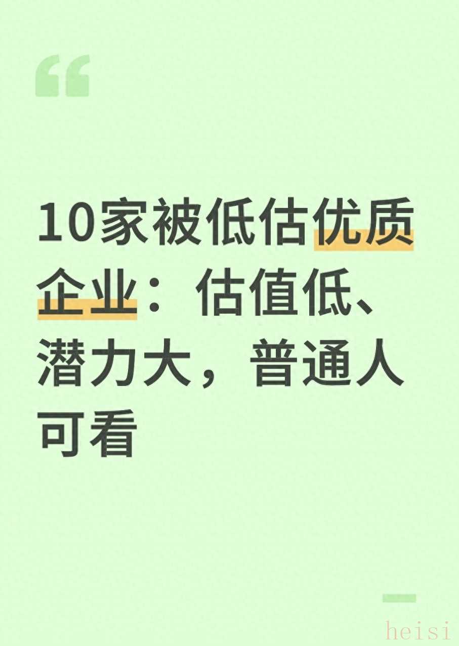今天不跟你說具體哪10家企業(yè)(免得有薦股風(fēng)險(xiǎn)),就跟你嘮5個(gè)最容易藏“被低估好企業(yè)”的行業(yè),每個(gè)行業(yè)給2個(gè)靠譜方向,加起來正好10個(gè)。咱不說那些繞人的術(shù)語,用大白話講清楚“為啥這些方向被低估”“咋選這些方向的企業(yè)”,你看完自己就能找,既安全又實(shí)用。