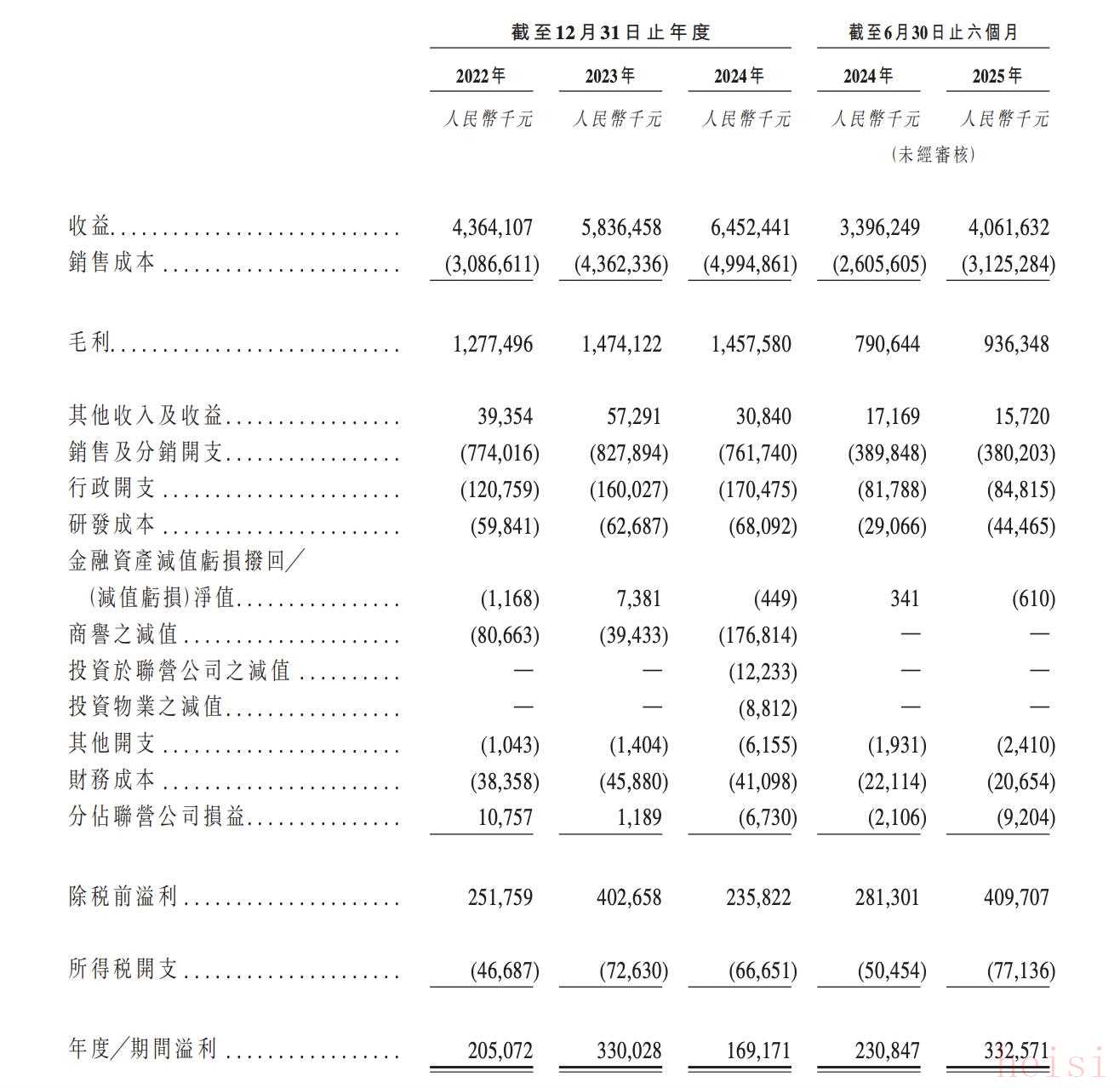 2022年至2024年,潮宏基收益分別為43.64億元、58.36億元、64.52億元,期內(nèi)溢利分別為2.05億元、3.3億元、1.69億元。