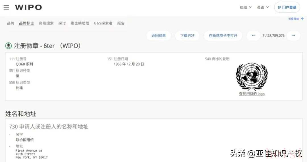 筆者統(tǒng)計(jì)時(shí)間:2024年12月28日比如「聯(lián)合國標(biāo)志」的徽章注冊檔案▼