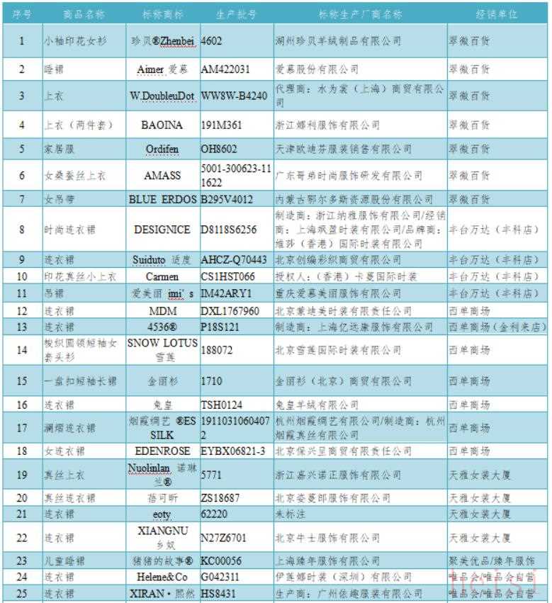 北京市消費者協(xié)會真絲服裝比較試驗符合國家標準樣品匯總