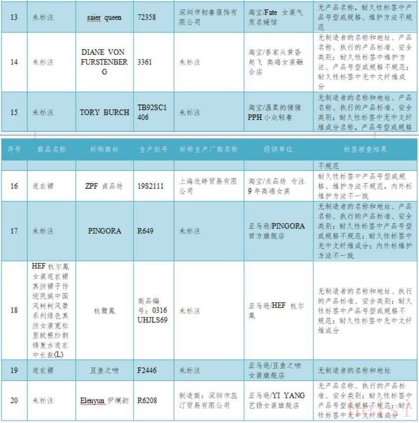 國家標準規(guī)定使用說明內(nèi)容應(yīng)包括:制造商的名稱和地址、產(chǎn)品名稱、產(chǎn)品號型或規(guī)格、纖維成分及含量、維護方法、執(zhí)行的產(chǎn)品標準、安全類別等內(nèi)容。經(jīng)測試,有20款樣品的產(chǎn)品使用說明不符合標準要求,占比20%。其中有13款樣品的維護方法標注不規(guī)范、不完整。此外,部分樣品執(zhí)行標準、產(chǎn)品質(zhì)量等級標注不規(guī)范: