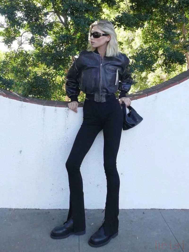 oversized款式比較適合身材高挑的女生,就完全可以照抄Hailey的穿搭方式。Hailey日常街拍中超高的皮夾克比例,讓一件夾克也可以延伸出多種穿搭。馬上要來(lái)的春天用夾克放肆露腿,這樣的「下半身失蹤」是今年辣妹的最佳打開(kāi)方式。