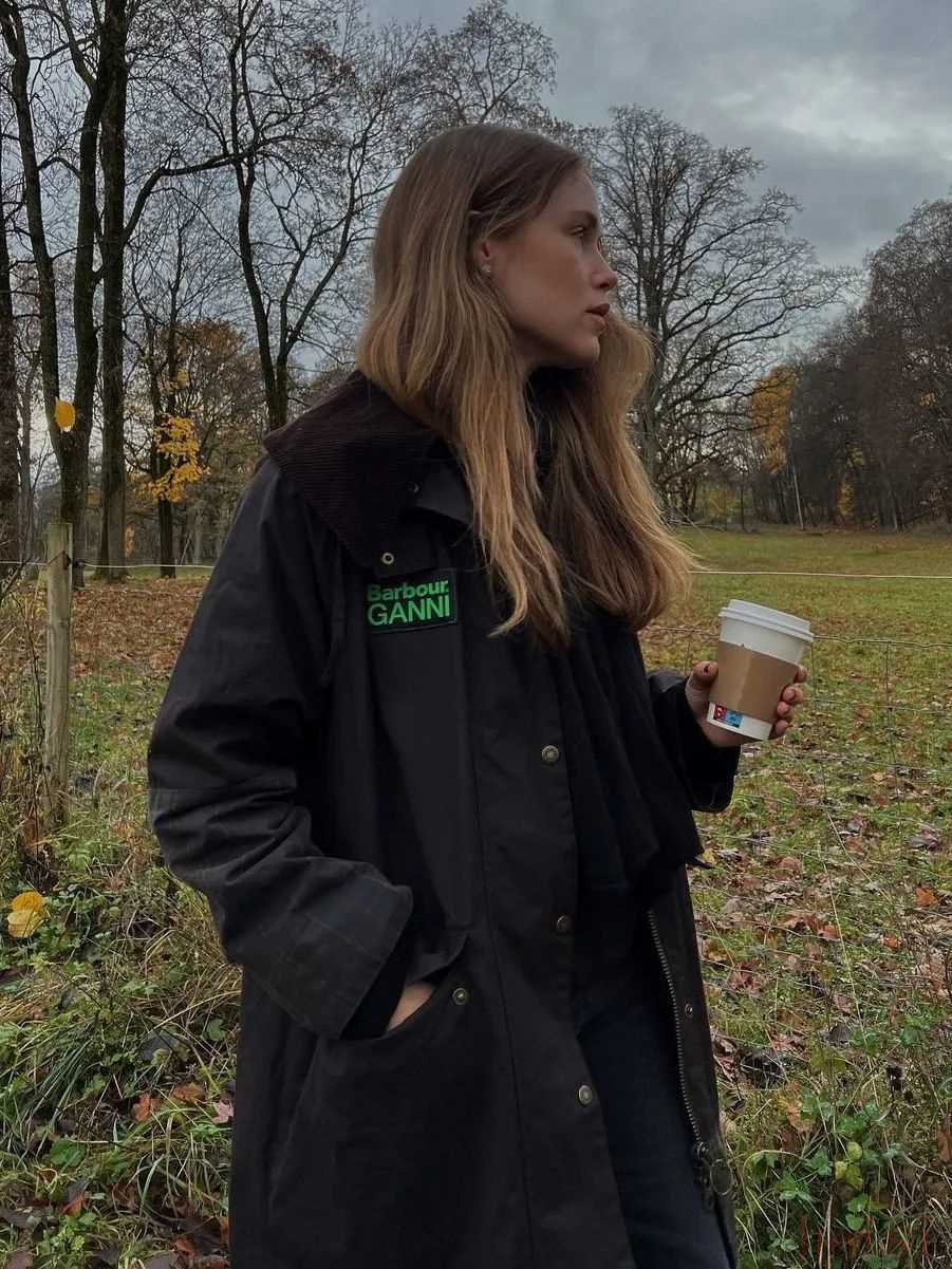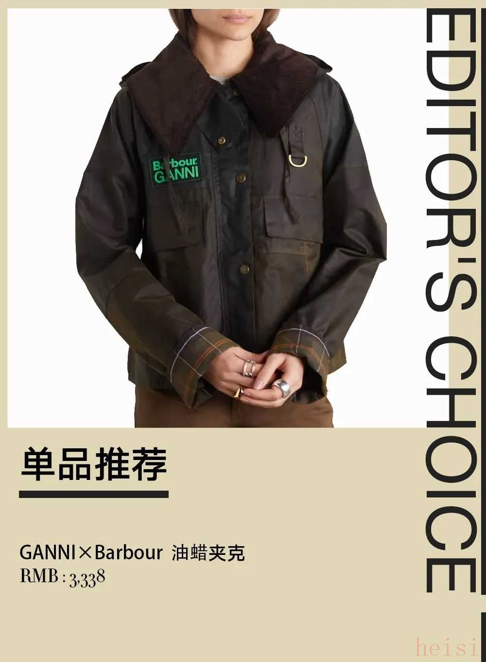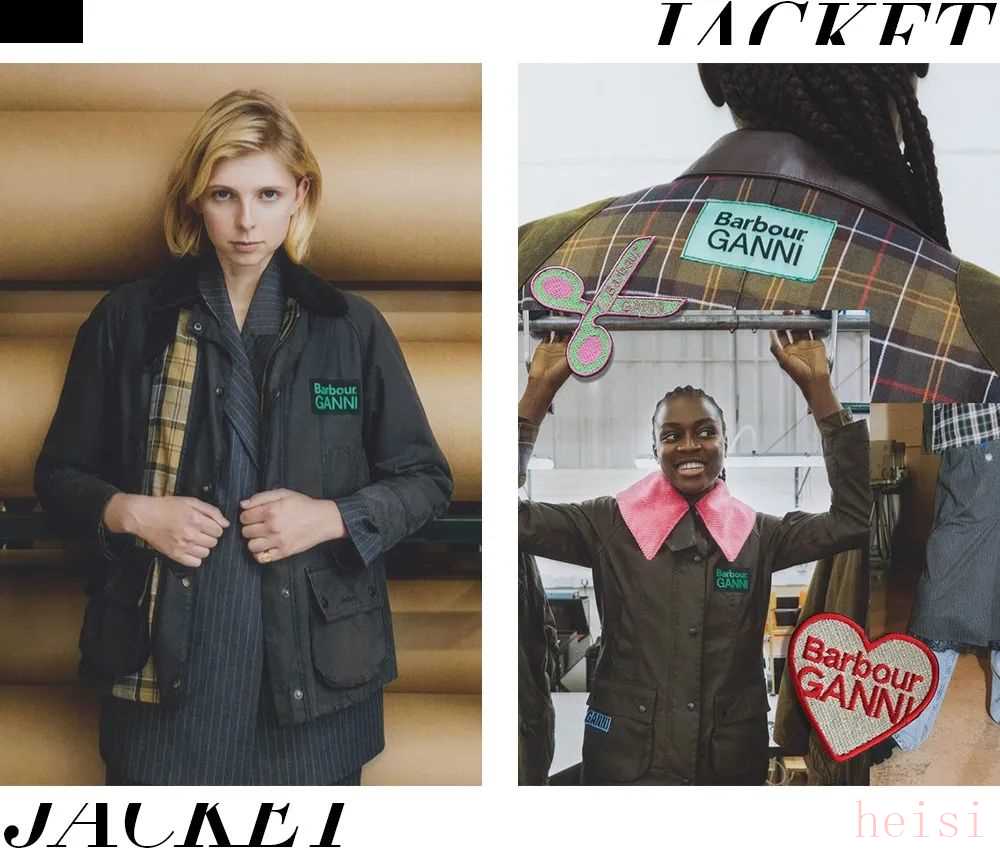 Barbour的火熱程度從這幾年它和各種時(shí)尚品牌的聯(lián)名就可以看出。今年和GANNI的聯(lián)名就用回收的Barbour夾克進(jìn)行了可愛(ài)的remake,不僅符合兩個(gè)品牌的環(huán)保理念還讓油蠟夾克更有年輕感。