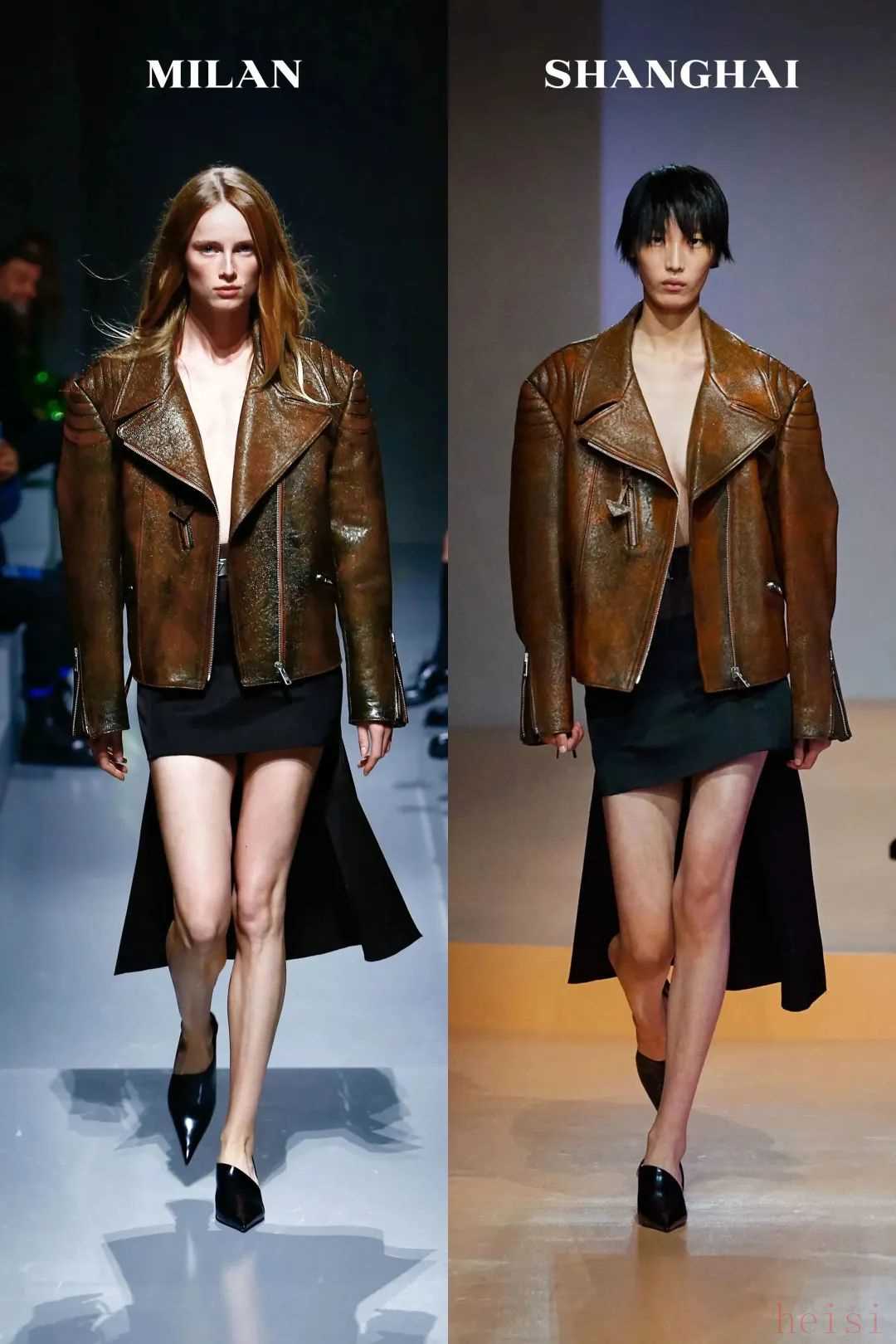 除了和夾克風(fēng)格統(tǒng)一的褲裝,皮夾克還很適合搭配今年很流行的全長(zhǎng)半裙,裹身感的裙裝和機(jī)車風(fēng)格的夾克會(huì)沖撞出意想不到的效果。