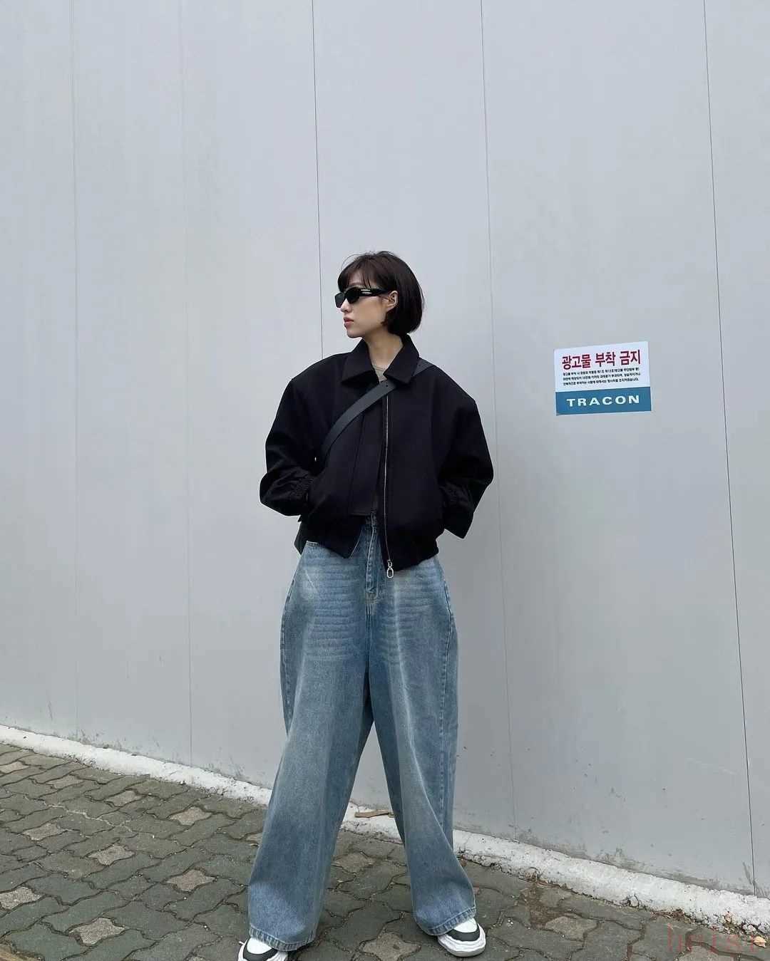 2. "夾克本身的經(jīng)典款型":雖然不是什么特別前衛(wèi)的設(shè)計(jì),但這件夾克(很多認(rèn)為是工裝夾克或類似款型)版型挺括,線條硬朗,自帶一種酷感和力量感,本身就適合打造帥氣造型。