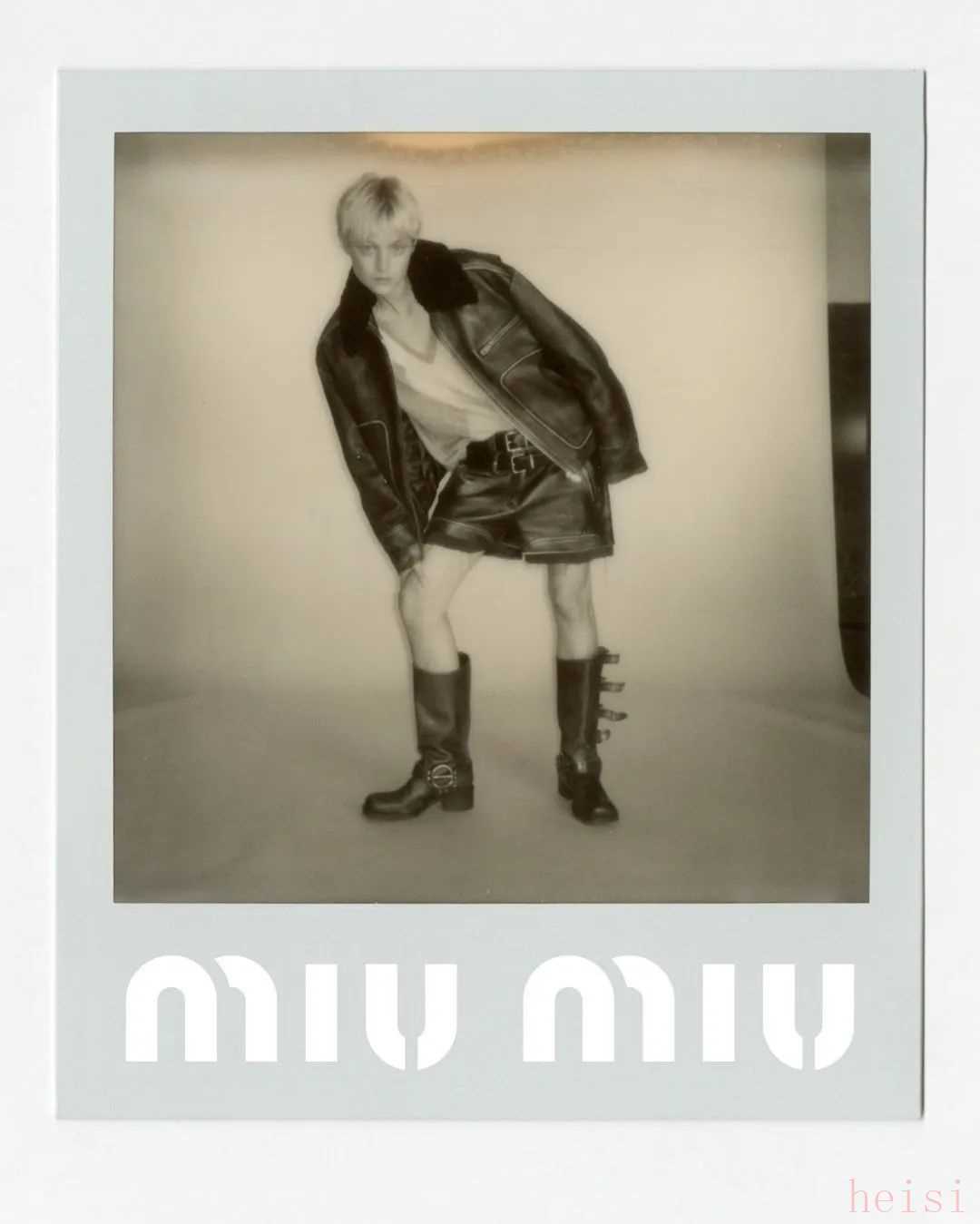 更符合Miuccia個(gè)人風(fēng)格的Miu Miu則構(gòu)建了一個(gè)她認(rèn)為眼中年輕、特立獨(dú)行的年輕時(shí)髦女孩模樣。不帶有任何討好性的美,“壞品味”低腰混搭優(yōu)雅百褶裙,穿夾克的女孩野蠻而美麗。