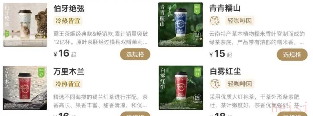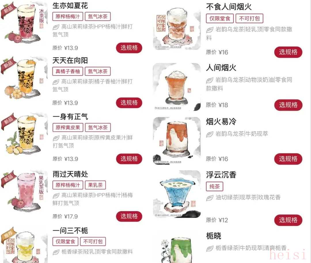 品牌自己倒是說得頭頭是道。霸王茶姬說要走國風(fēng)路線,結(jié)果菜單上的“青青糯山”其實就是加了牛乳的茶。茶顏悅色的“生亦如夏花”喝起來就是荔枝味的,要是沒看小字介紹,誰能猜到配料?