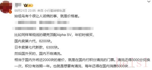 一位微博博主發(fā)文稱,“比如同樣常規(guī)線的硬殼頂配Alpha SV,年初時候買,國內(nèi)賣的第六代,(售價為)8200塊,日本賣的第七代新款(售價為)6300塊。”