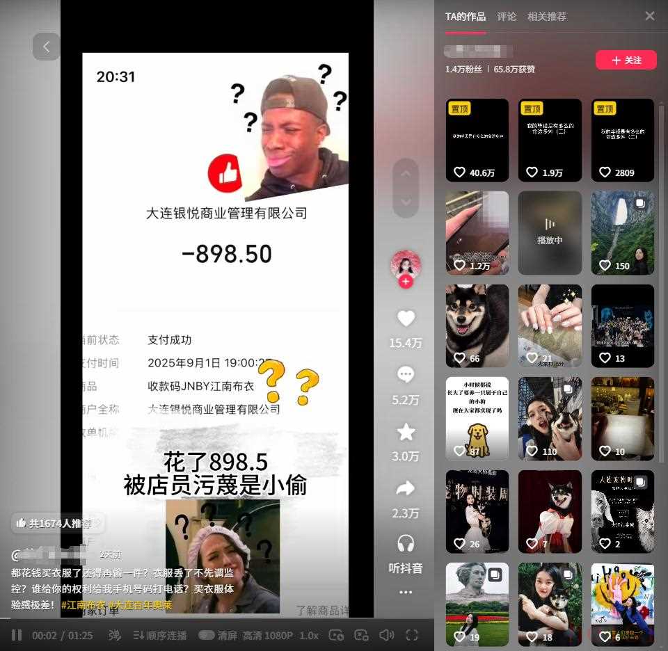 姑娘一氣之下把視頻全發(fā)到了網(wǎng)上,結(jié)果好多網(wǎng)友在得知店鋪是“江南布衣”后,紛紛站出來吐槽。