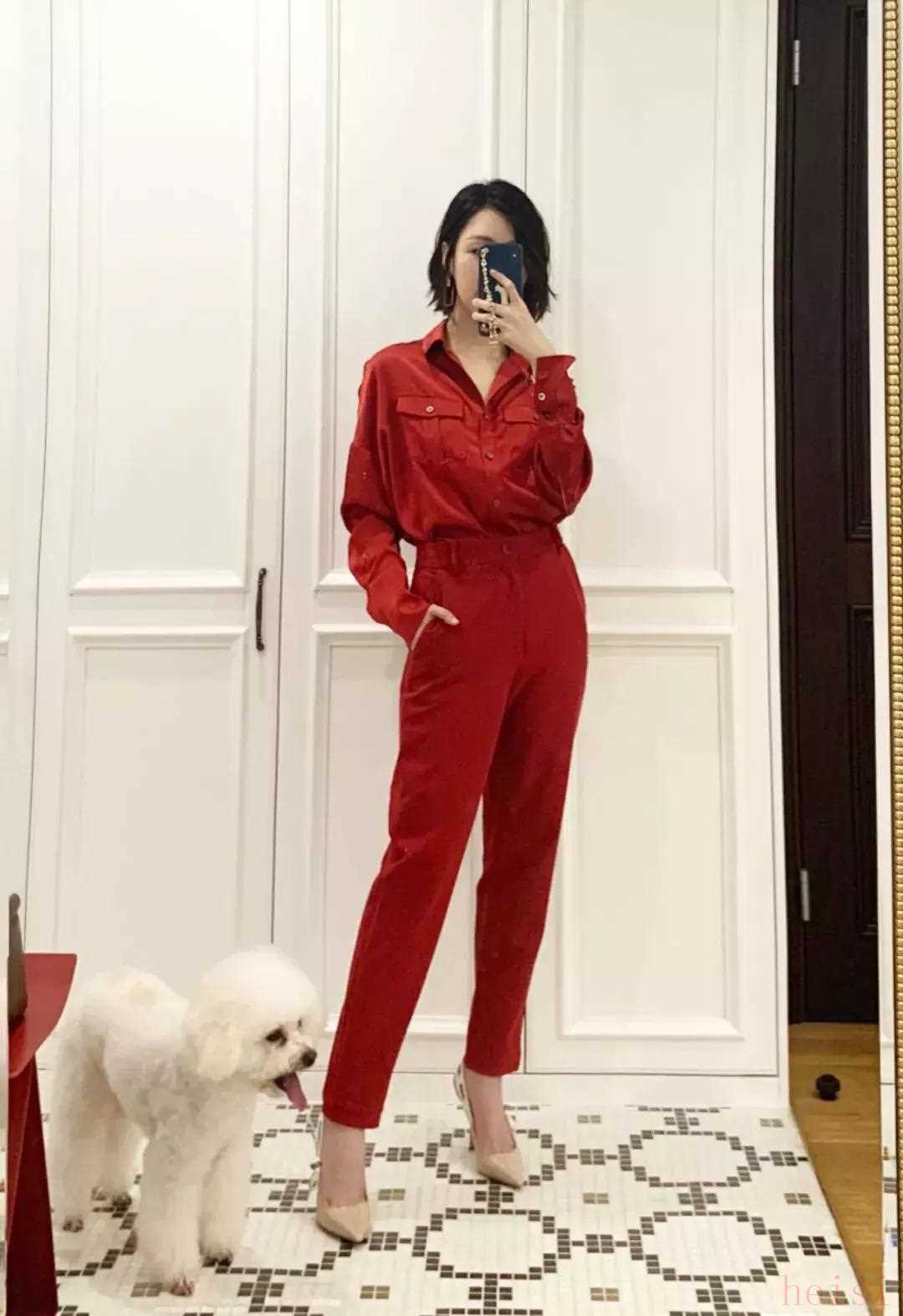 裸色尖頭鞋的利用率有多高,就不用我說了。連很難搭的全紅,都hold得住。這雙的帶子也很點睛,它會成為經(jīng)典款還是有原因的~▼